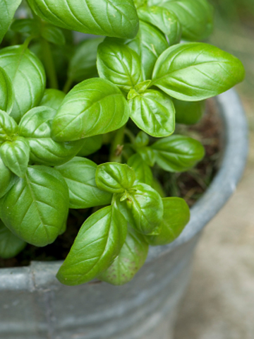 *Basil (Ocimum basilicum) One of the best tastes of summer is a mouthful of fresh basil, tomato and olive oil. Basil also makes pesto to eat with pasta. Sow annually in spring in a greenhouse before planting out (or sow in situ in warmer weather); basil likes rich, well-drained soil in sun. Water regularly in the morning (never the evening) and keep picking the leaves to stimulate fresh growth.