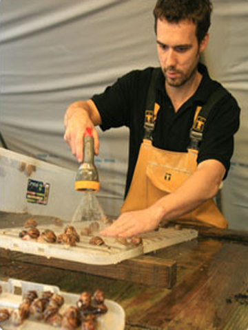 Back in Dorset, Tony Walker is feeding his snails. Their diet is a closely guarded secret, which he claims is what makes his molluscs ‘taste so good.’ Once the snails have hatched it takes about 14 to16 weeks for them to be ready for harvest, during which they require regular feeding, cleaning and their temperature must be closely monitored. ‘It’s a highly technical process,’ he admits. In a controversial practice that is bound to attract criticism from animal welfare campaigners, a week before harvest, Tony starves the snails to flush out their system. Unless they co-ordinate an unlikely escape, the gastropods will then be cooled in a fridge to force them into hibernation, during which they will be blanched in water with salt and vinegar. Finally the meat will be plucked out of the shell, chilled and delivered to Dorset Escargot’s clients. ‘They are so versatile,’ explains Tony. ‘I don’t know one restaurant that is cooking them the same.’ I ask what prompted Tony to become a snail farmer. ‘Before this I was breeding worms for tackle shops,’ he says. ‘Then one night I watched the F-Word and Gordon Ramsay was visiting a snail farm in Devon.’