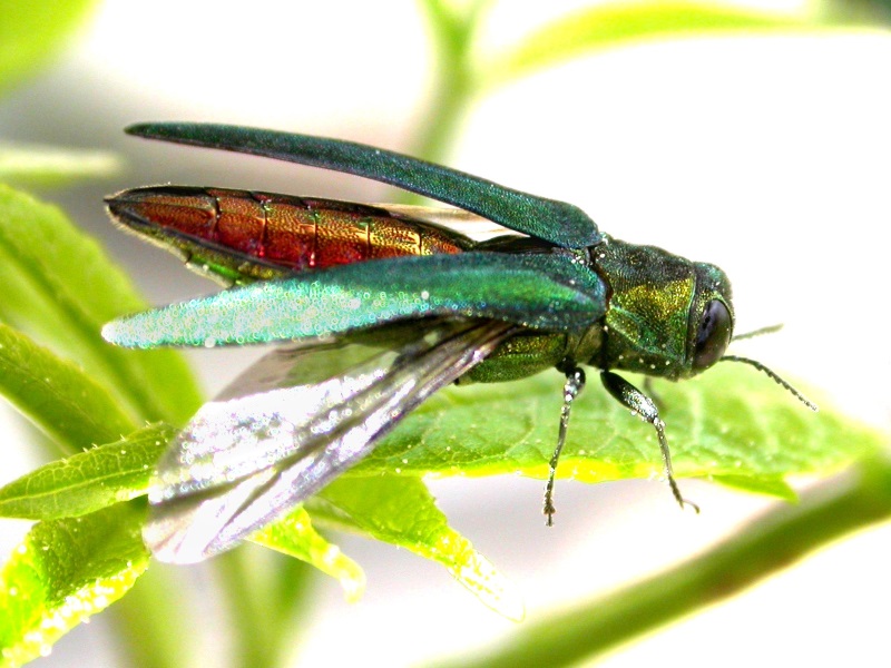The NORNEX report mentions the second threat on the ash tree's horizon: the emerald ash borer, an insect which is present on the continent of Europe, having spreading westwards from Moscow. The bright green bug is native to the same areas of east Asia as H. fraxineus, but spread to North America - probably in the late 1990s/early 2000s - where it is devastating all native species of ash.