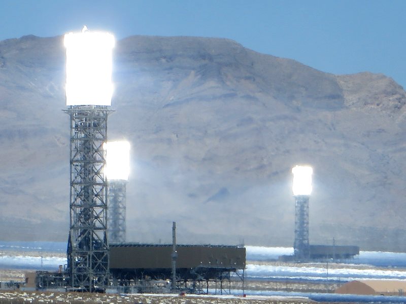 Blazing a trail? The Ivanpah Solar Electric Generating System - a concentrated solar thermal plant in the California Mojave Desert SW of Las Vegas - has a capacity of 392 MW. Photo: Ken Lund via Flickr (CC BY-SA).