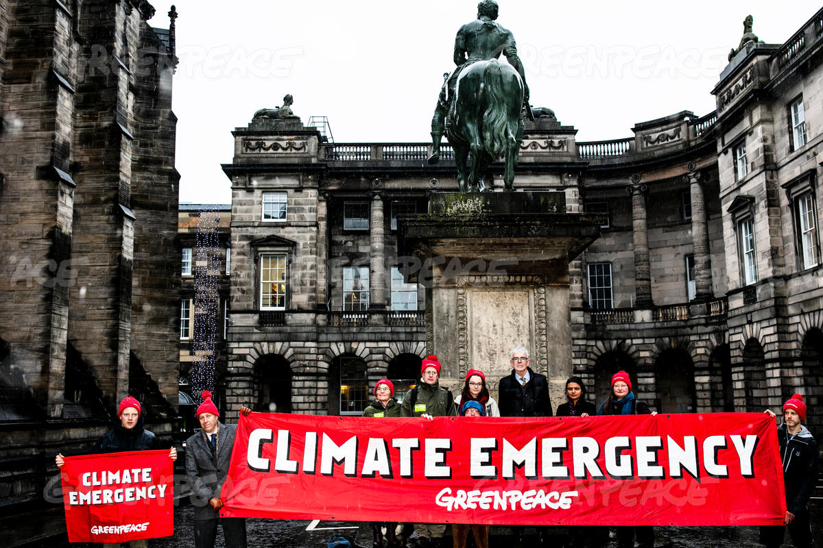 Greenpeace supporters outside Edinburgh's Court of Session