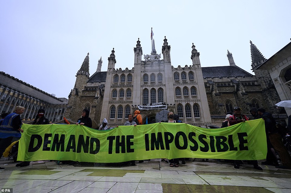 Flynn attended a protest on Sunday evening in which three activists scaled the entrance of the Guildhall building in central London.
